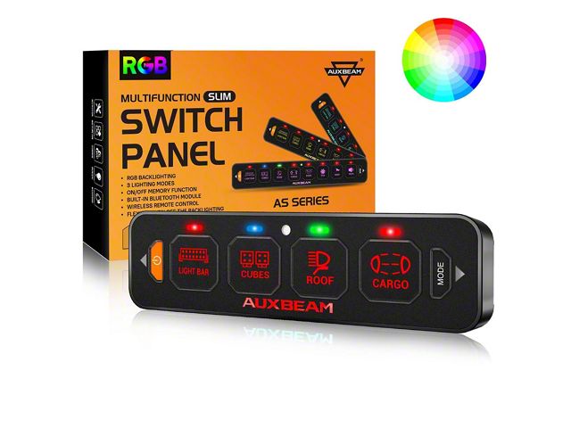 Application. This Auxbeam AS-R40 Slim Series 4-Gang Multifunction Switch Panel with Remote Control fits universal applications.