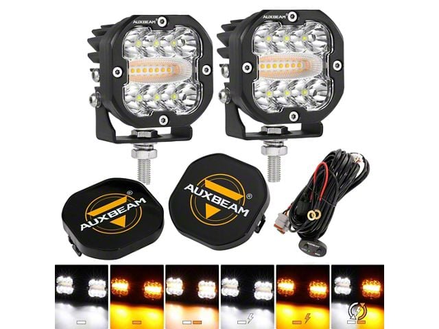 Advanced Lighting Control. The Auxbeam XP-ULTRA Series 6-Mode LED Driving Lights deliver versatile lighting performance for demanding conditions. Engineered as a direct replacement with universal fitment, these 3-inch pods are equipped with 6 color modes including white, amber, combinations, and flash/strobe functions—making them ideal for off-road driving, emergency visibility, and night exploration. Reset, synchronization, and memory functions ensure seamless control during every use.