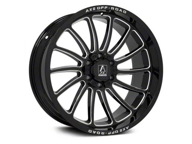 This 22x10 Axe Wheels Chronus Gloss Black Milled 8-Lug Wheel is completed in a high-quality gloss black finish with steel milled accents that will be the envy of everyone. There's a durable clear coat that protects against driving hazards.