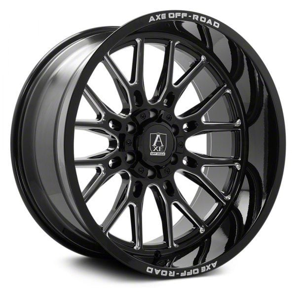 This 22x10 Axe Wheels Atlas Gloss Black Milled 6-Lug Wheel is completed in a high-quality gloss black finish to keep your wheel looking as sharp as its design. The wheel's milled steel accents are where it really shines through, and quite literally. It makes the split section of the spokes pop.