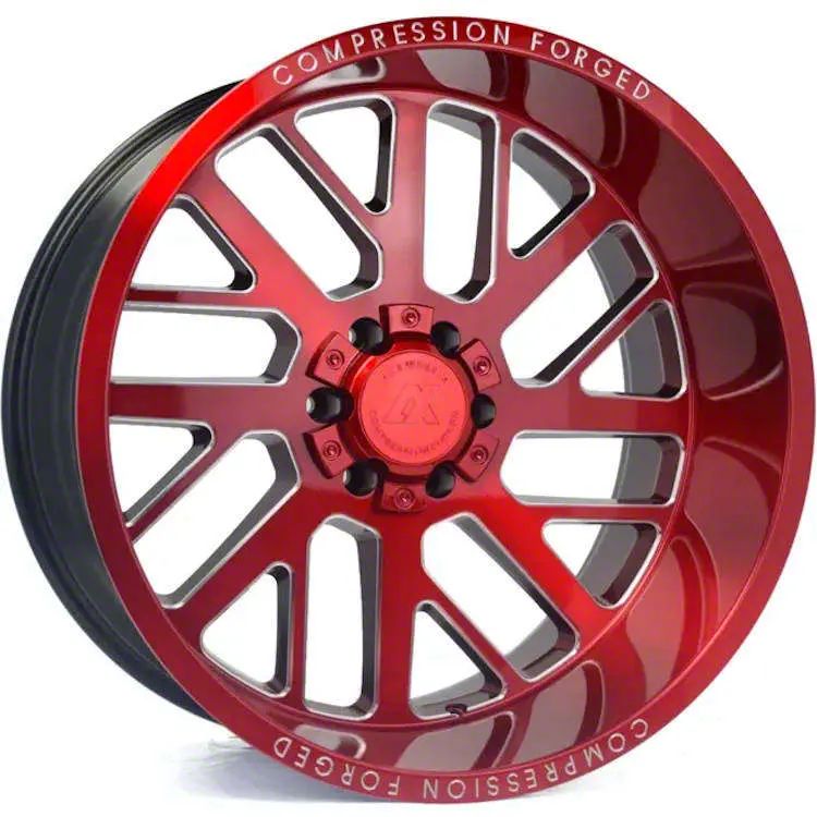 This 20x10 Axe Wheels AX2.2 Candy Red 6-Lug Wheel is completed in a high-quality, dynamic candy red finish with machined accents that creates an impressive appearance. There's a durable clear coat that will protect against the hazards of driving.One-Piece Cast Aluminum Construction. This wheel is manufactured using gravity casting. Gravity casting is the process of pouring a molten aluminum alloy into a wheel mold or form utilizing the earth's own gravity to help fill the mold. The result is a strong, durable wheel that has the same good looks as a more expensive wheel, at a fraction of the price.
