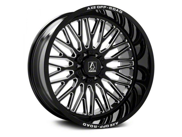 Axe Wheels Kratos Gloss Black Milled 6-Lug Wheel; 24x14; -76mm Offset. The Axe Wheels Kratos Gloss Black Milled 6-Lug Wheel offers a striking balance of style and refinement. Its unique design accentuates the vehicle's aesthetic, while the premium construction underscores its robust nature. This wheel is a perfect choice for those seeking both elegance and a strong visual statement.