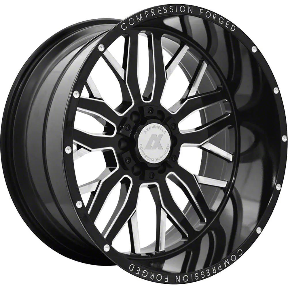 Axe Wheels AX1.0 Gloss Black Milled 5-Lug Wheel; 22x12; -44mm Offset exudes sophistication with its finish, offering a sleek and modern appeal to any vehicle it adorns. The design is meticulously crafted to enhance the aesthetic of your vehicle, giving it a distinctive and upscale look. Perfect for those seeking to elevate their vehicle's style, this wheel blends seamlessly with both contemporary and classic vehicle designs, making it a versatile choice for a wide range of vehicles. Its robust construction ensures durability, making it a reliable choice for drivers who value both style and quality.