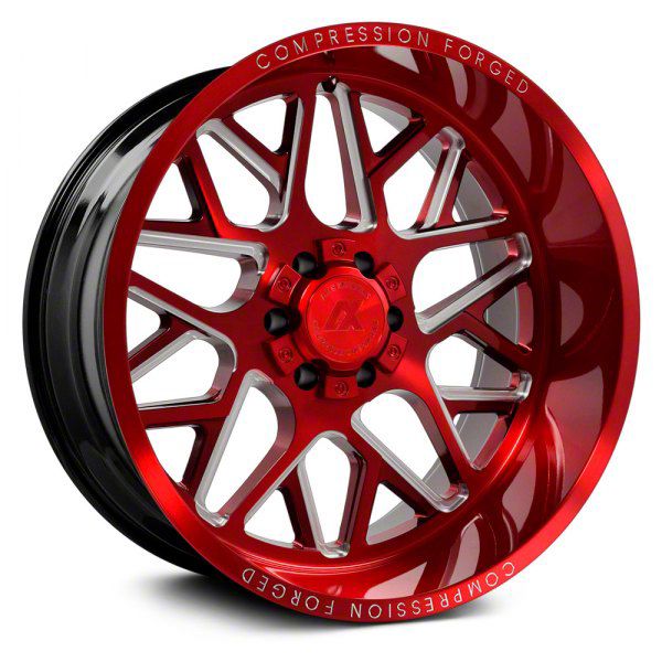 This 22x12 Axe Wheels AX5.2 Candy Red 5-Lug Wheel is completed in a high-quality, distinct candy red finish for an awesome appearance. There's a durable clear coat finish that protects against driving hazards.