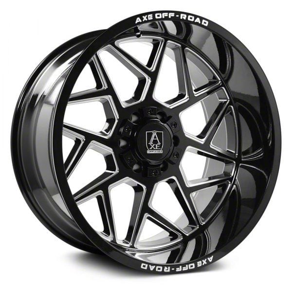 Axe Wheels Nemesis Gloss Black Milled 6-Lug Wheel; 22x12; -44mm Offset. Enhance your vehicle's look with the Axe Wheels Nemesis Gloss Black Milled 6-Lug Wheel. This premium wheel adds a touch of elegance and class to your vehicle, complementing its sophisticated aesthetic.