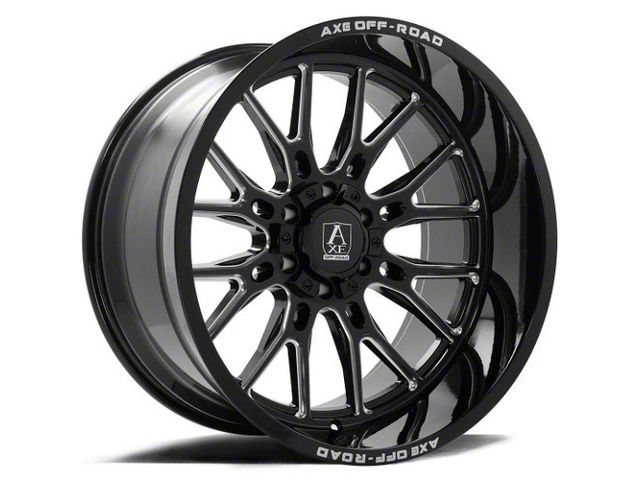 Axe Wheels Atlas Gloss Black Milled 8-Lug Wheel; 20x10; -19mm Offset exudes a captivating aesthetic appeal that seamlessly complements various vehicle styles. The craftsmanship of Axe Wheels ensures a robust and premium feel, making it a standout choice for discerning drivers.