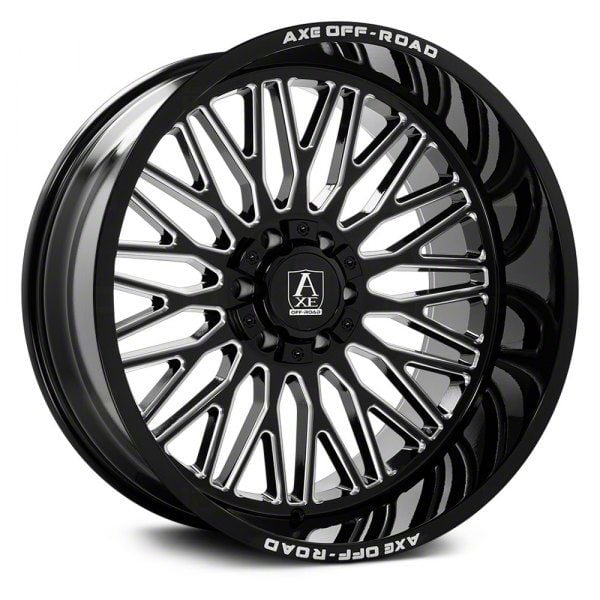 The 22x12 Axe Wheels Kratos Gloss Black Milled 6-Lug Wheel is given a gloss black finish to keep your wheel looking sharp as its design. This wheel's milled steel accents are where it really shines through, and quite literally.