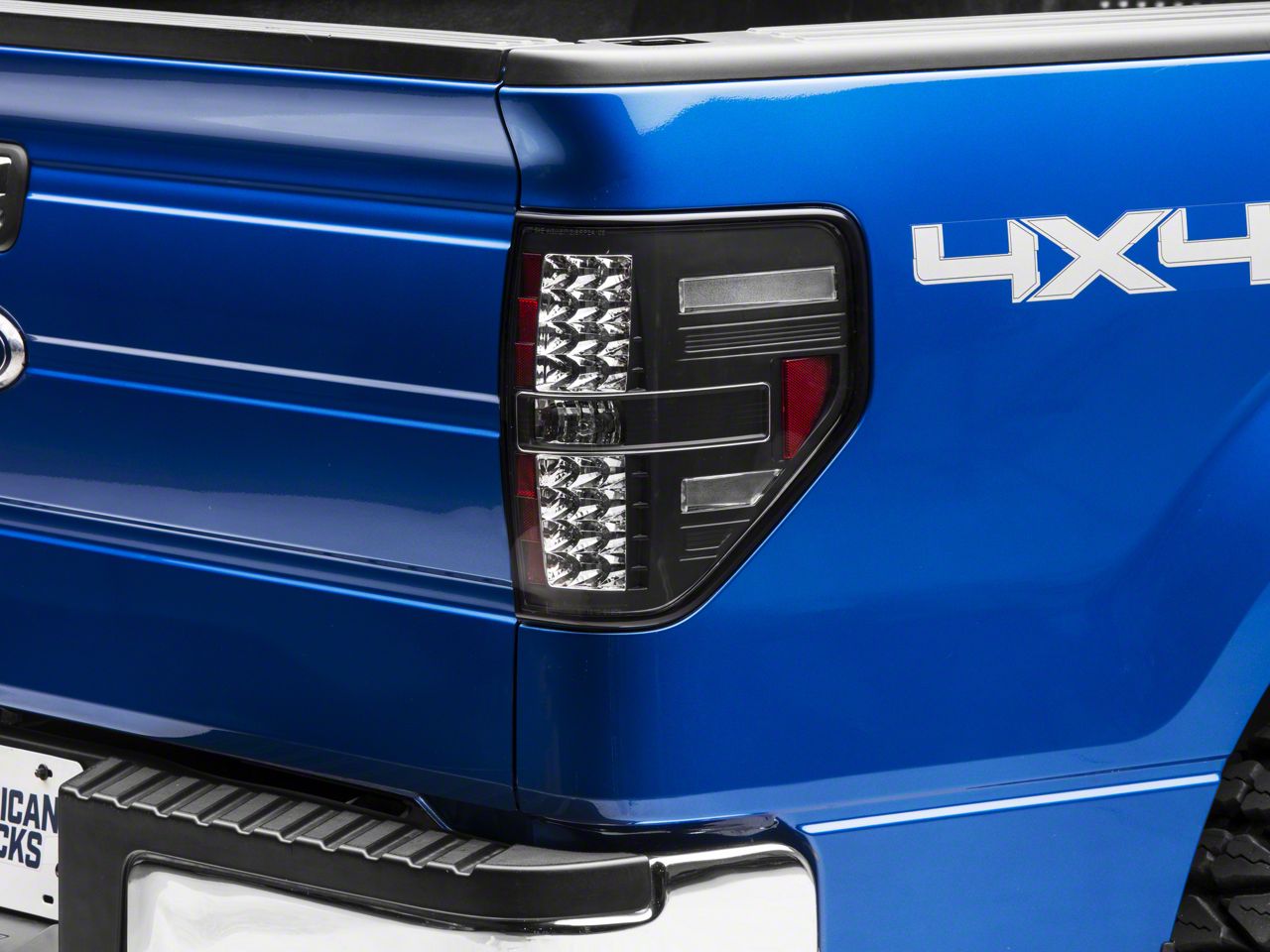Intimidating Styling. A pair of Bermuda Black LED Tail Lights are a great way to add intimidating styling to your 2009-2014 Styleside F-150. Featuring black outlined housings, these LED Tail Lights blend nicely with the lines of your truck's tail gate. Whether your F-150 is your daily driver or a dedicated work truck these LED Tail Lights are sure to get you noticed.