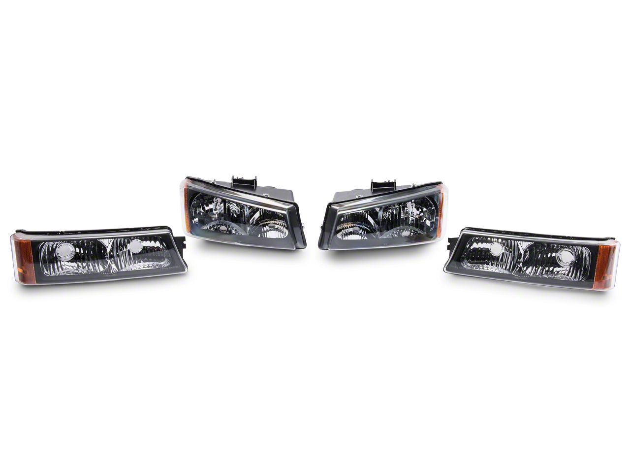 Application. This Black Crystal Headlight and Bumper Light Kit is designed to fit 2003-2006 Chevrolet Silverado 1500 models. Driver and passenger side lights are included.