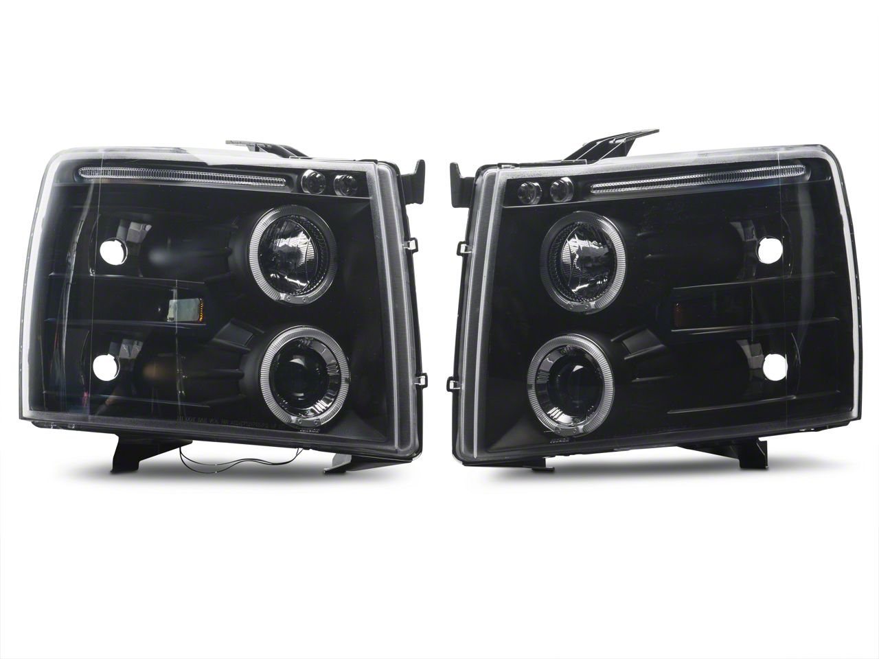 Application. These Black Dual Halo Projector Headlights with LED Accents are designed to fit 2007-2013 Chevrolet Silverado 1500 models. Does not fit 2007 Silverado 1500 Classic models. Driver and passenger side lights are included.