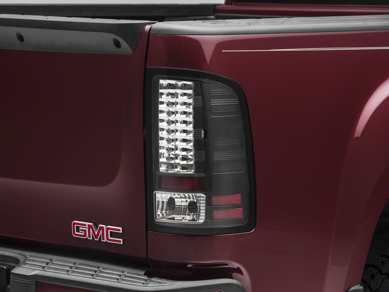 Application. These Black LED Tail Lights are designed to fit 2007-2013 GMC Sierra 1500 models equipped with the factory, bulb style tail lights. Driver and passenger side tail lights are included.