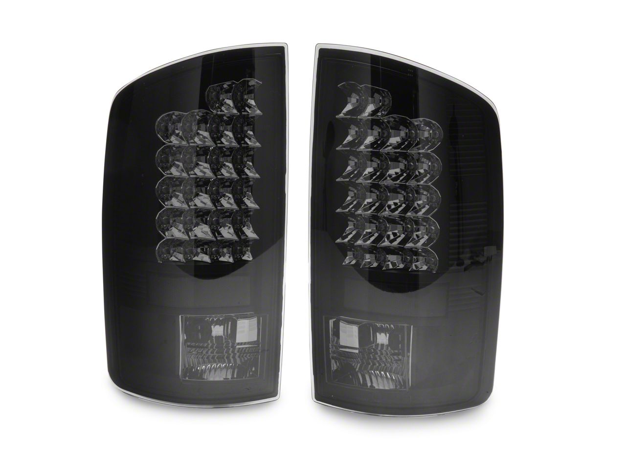 Sleek Lighting Change. Your Dodge RAM is tough, and it looks the part. Add to its intimidation factor with these sleek, cool, and aggressive-looking Black Smoked LED Tail Lights. The lenses are a smoky black color to create a mysterious, masculine look. Despite the smoky coloring, these lights also improve visibility using fast-acting LEDs.
