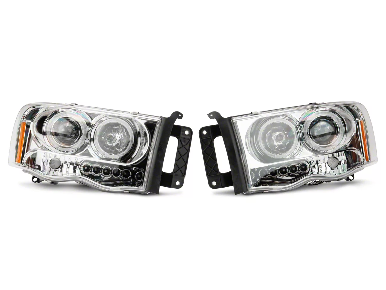 Dynamic Appearance. You can replace the old factory headlights on your 2002-2005 Dodge RAM with these Chrome Dual LED Halo Projector Headlights. They'll give your truck a sleek and dynamic appearance, while they've also been designed to perfectly balance form and function.