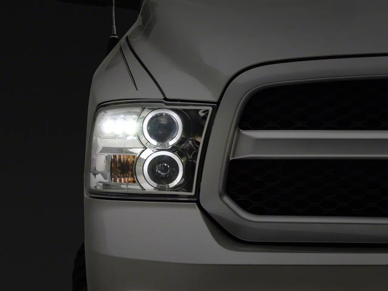 Application. These Chrome Dual Halo Projector Headlights with LED Accent Lights are designed to fit 2009-2018 Dodge RAM 1500s without Factory Projector Headlights.
