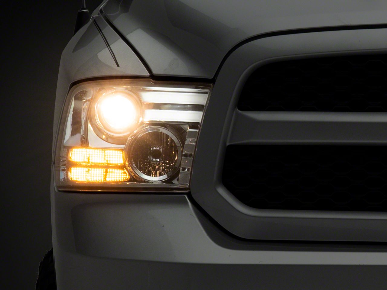 AmericanTrucks no longer carries the Light Bar DRL Projector Headlights; Chrome Housing; Clear Lens (09-18 RAM 1500). Please check out 1994-2001 Dodge Ram 1500 Lights for an updated selection.