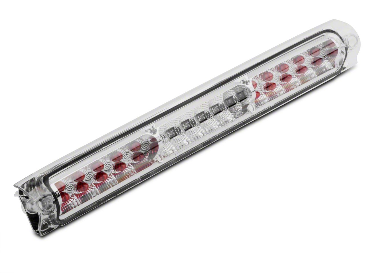 Additional Safety. An Crystal Clear LED Third Brake Light with Red Capped LEDs is an excellent way to improve the safety your 1997-2003 Ford F-150. The same size as your stock third brake light, this LED Third Brake Light features 20 super bright red LEDs that will be sure to catch the attention of distracted drivers. This Third Brake Light features a chrome housing with a clear lens for a clean appearance.