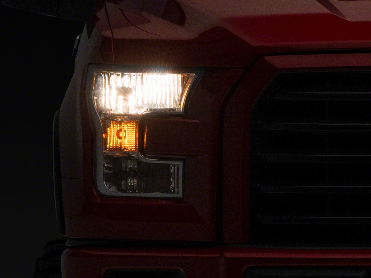 Application. These Axial OEM Style Replacement Headlights; Chrome Housing; Clear Lens are designed to fit 2015-2017 Ford F-150 models with Factory Halogen Headlights. Driver and passenger side included. Reuses factory bulbs.
