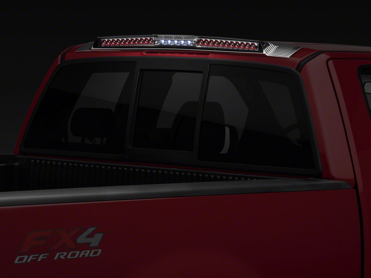 Additional Safety. Increase the safety of your 2004-2008 Ford F-150 by upgrading to an MEGA Crystal Clear LED Third Brake. Much wider than the factory third brake light, this MEGA LED Third Brake Light with its 22 super bright red LEDs will be sure to catch the attention of distracted drivers. This MEGA Third Brake Light features a bright chrome housing with red trim around each individual brake LED for a more prominent appearance. As an added bonus, this Third Brake Light also has 5 white LEDs to illuminate the cargo in the bed of your F-150.