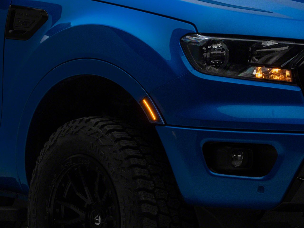 Lighting Appearance Upgrade. A set of Axial Smoked LED Side Marker Lights is a simple and effective way to upgrade the exterior styling of your 2019-2023 Ford Ranger. These Side Marker Lights feature a razor sharp LED strip that replaces the unsightly hot spot of the factory lights. These Axial Side Marker Lights not only look great, but they are also much brighter than the weak factory incandescent lights for increased visibility day or night.
