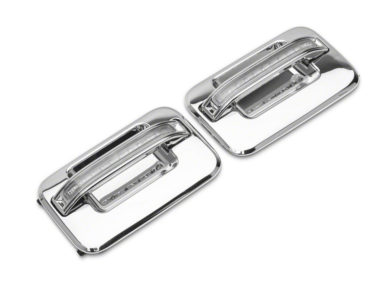 Extra Safety and Clean Styling. Add an unique upscale appearance to your 2004-2008 SuperCrew F-150 with a set of LED Rear Door Handles. These stylish Door Handles have a chrome finish and feature amber LEDs with clear lenses to give your truck a little extra bling. Designed to operate with either your F-150's running lights or turn signals, these super bright LED Door Handles will make sure you are spotted by distracted or careless drivers.