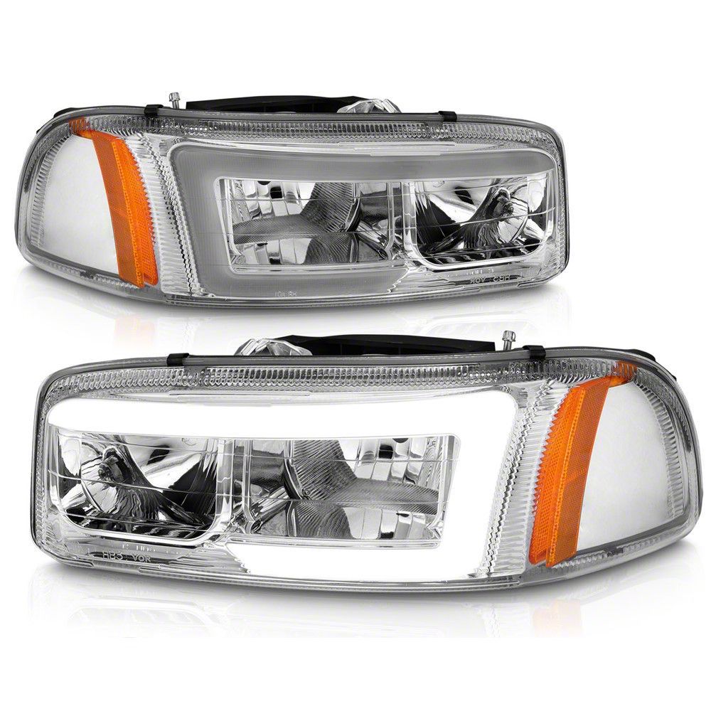 Application. These Axial LED DRL Headlights; Chrome Housing; Clear Lens are designed to fit 1999-2006 GMC Sierra 1500 models equipped with halogen headlights. Driver and passenger side included. Reuses factory bulbs.Raxiom S523543