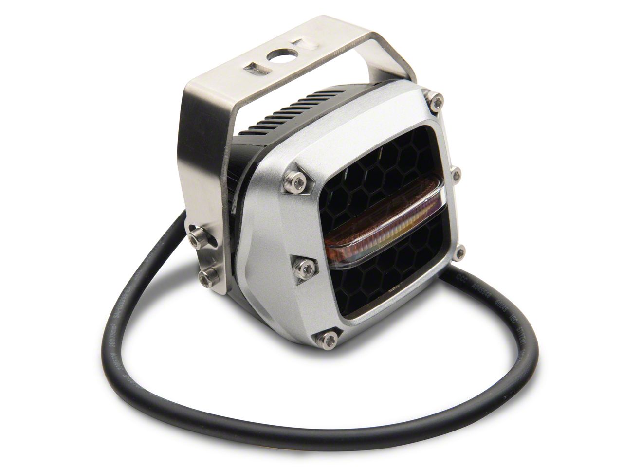 Powerful Work Light. Small, but powerful this Axial 4-Inch LED Work Light will help you prepare for late nights at the work site or after dark trail runs. Perfect for use on all models of GMC Sierras, this Light features a driving beam pattern giving you plenty of light coverage on the trail and on the work site. The honeycomb style grille gives this Work Light a rugged appearance, while the integrated amber running light will be sure to catch the attention of distracted drivers day or night.