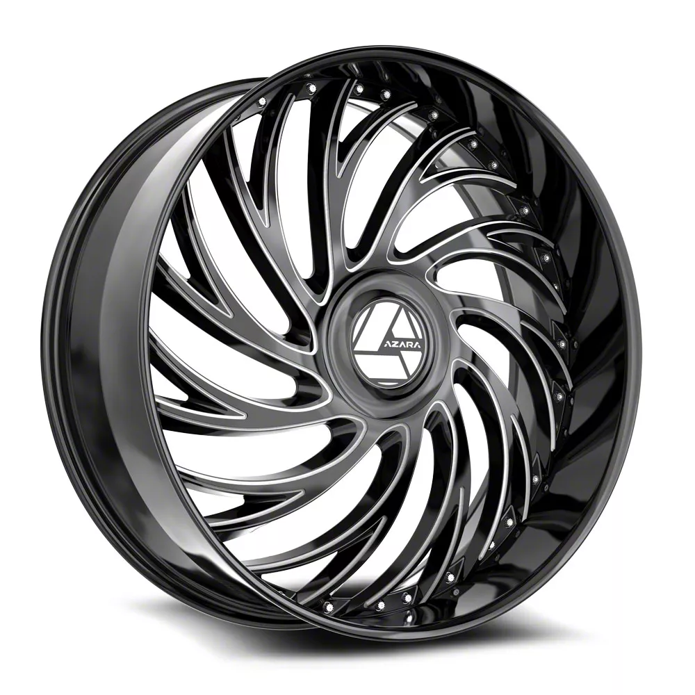 This 28x9.5 Azara AZX-101 Gloss Black and Milled 6-Lug Wheel; 28x9.5; 22mm Offset is completed in a high-quality gloss black finish with steel milled accents that will make everyone take notice. For added looks and strength, the wheel features a durable clear coat that withstands the rigors of daily driving.