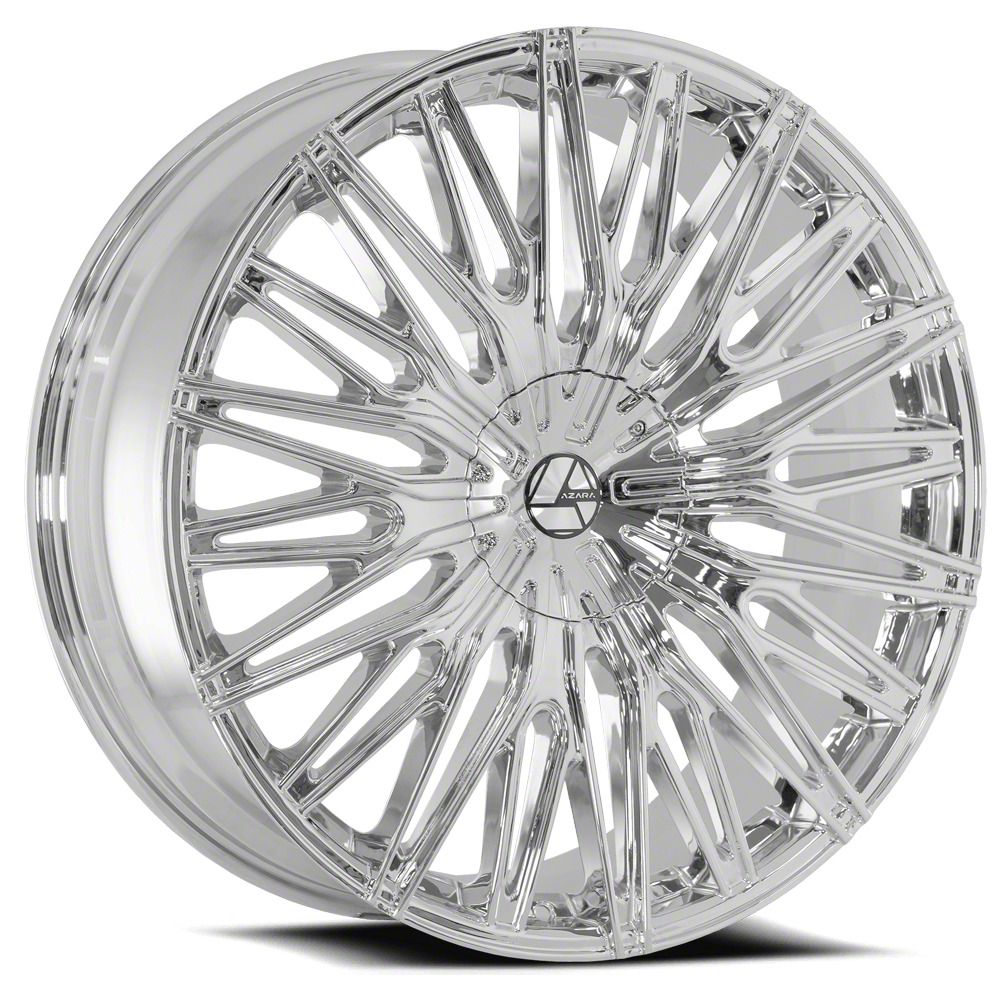 This 24x9 Azara AZA-522 Chrome 6-Lug Wheel; 24x9; 25mm Offset is completed in a high-quality chrome finish that will make everyone take notice. Using a 3-stage process involving copper, nickel and chrome, you get a sensational bright wheel that can withstand the rigors of daily driving.