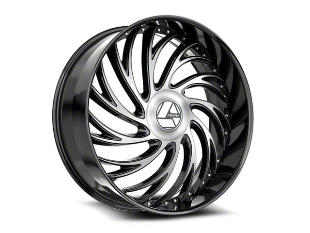 This 28x9.5 Azara AZX-101 Gloss Black and Machined 6-Lug Wheel; 28x9.5; 22mm Offset is completed in a high-quality gloss black finish with steel machined accents that will make everyone take notice. For added looks and strength, the wheel features a durable clear coat that withstands the rigors of daily driving.