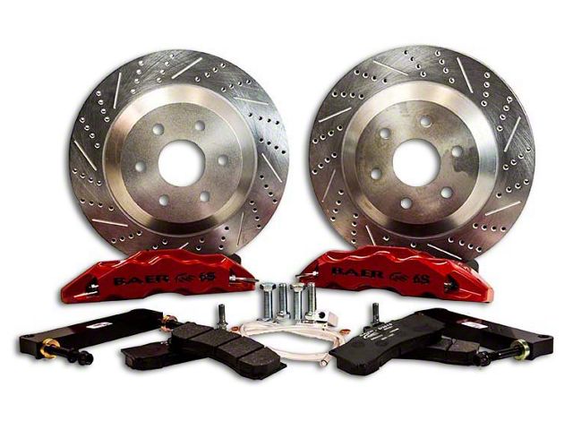 Ultimate Front Brake Kit. Baer’s 15” Front Brake Extreme System is the only six-piston brakes offered for the street. Hewn from monoblock aluminum, these incredible calipers grip 15” rotors for vastly improved braking performance, reduced fade and dust, and amazing looks behind the front wheels.