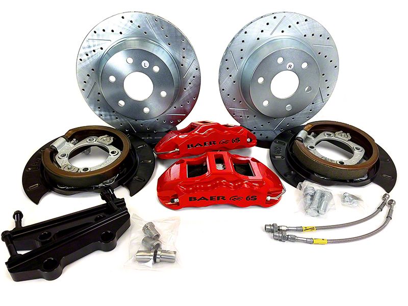 Complete Kit. The 14” Baer Rear Extreme features two rotors and monoblock calipers, plus brake pads and installation hardware. It’s a total stock-swap solution.