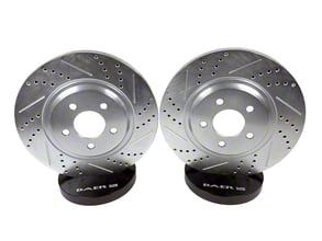 High-Performance Front Brake Rotors. The Baer BIG Claw Performance Drilled and Slotted 5-Lug Rotors (Front Pair) are designed to significantly enhance the braking performance of your RAM 1500. Featuring a larger-than-stock diameter and a curved vane design, these rotors offer superior brake torque, heat dissipation, and consistent braking, ensuring dependable performance even under demanding conditions.