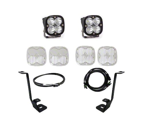 Straightforward Installation. Baja Designs designed the Squadron Pro LED Lights with A-Pillar Mounting Brackets for a no-drill installation. This light kit also includes mounting brackets, wiring harnesses, and high-grade stainless steel hardware. The installation process completes with light mechanical and electrical skills required.