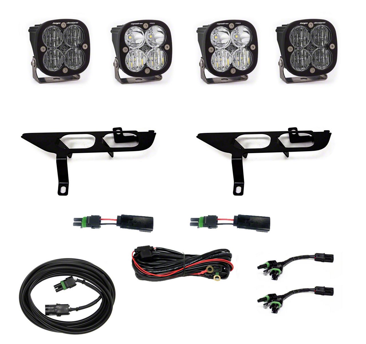 Style and Performance. This Baja Designs Squadron Pro/SAE White Fog Light Pocket Kit is designed for the Ford F-150 enthusiast that is looking to light up the trail with ample light, while differentiate yourself from the pack. This kit specifically utilizes a pair of Squadron Pro Driving/Combo Lights and a pair of Squadron SAE White wide cornering lights. This is a comprehensive kit and does not require any additional parts for installation.