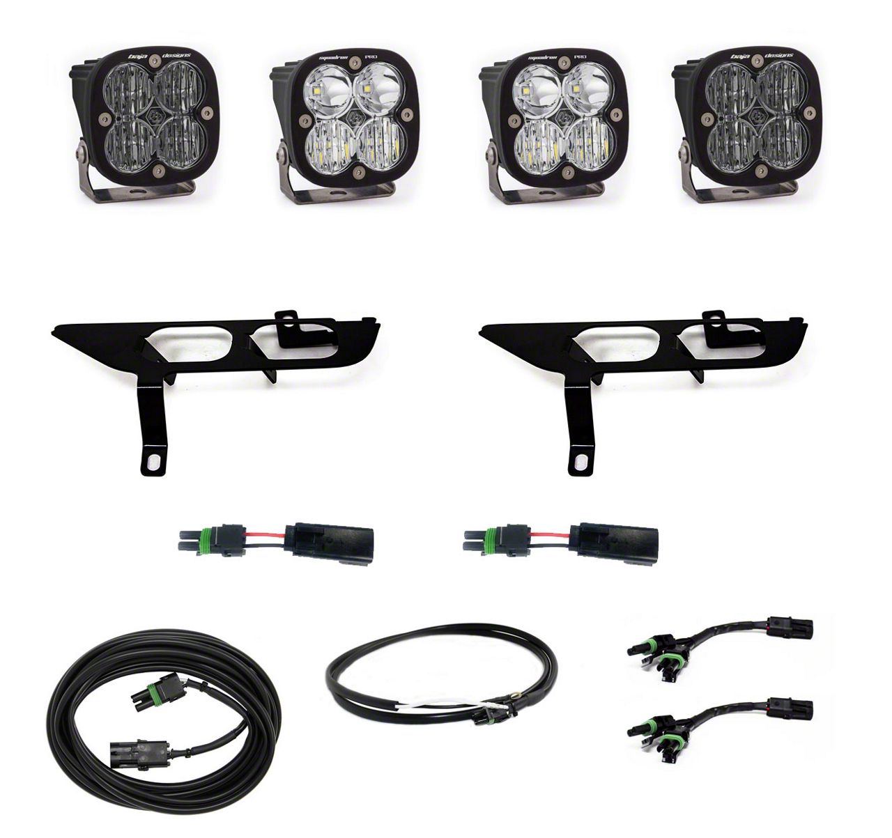 Style and Performance. This Baja Designs Squadron Pro/SAE White Fog Light Pocket Kit is designed for the Ford F-150 enthusiast that is looking to light up the trail with ample light, while differentiate yourself from the pack. This kit specifically utilizes a pair of Squadron Pro Driving/Combo Lights and a pair of Squadron SAE White wide cornering lights. This is a comprehensive kit and does not require any additional parts for installation.