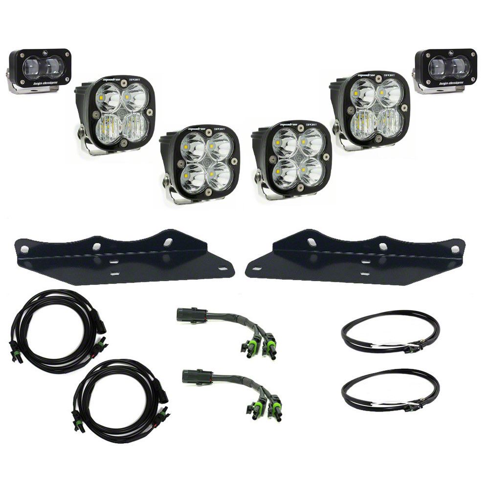 Advanced Lighting Solution. The Baja Designs Squadron/S2 Sportsman LED Fog Light Pocket Kit is expertly engineered for 2017-2020 F-150 Raptor models, providing a significant upgrade in visibility and aesthetics. Each kit includes 2 driving/combo Squadron Sport lights, 2 spot Squadron Sport lights, and 2 S2 fog lights, delivering 1,210 lumens per light at just 12.42 watts. This setup ensures comprehensive lighting coverage for a variety of driving conditions.