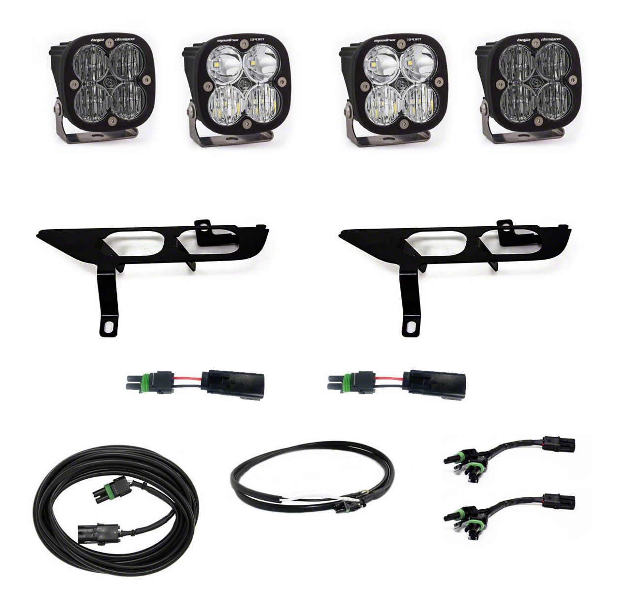 Style and Performance. This Baja Designs Squadron Sport/SAE White Fog Light Pocket Kit is designed for the Ford F-150 enthusiast that is looking to light up the trail with ample light, while differentiate yourself from the pack. This kit specifically utilizes a pair of Squadron Sport Driving/Combo Lights and a pair of Squadron SAE White wide cornering lights. This is a comprehensive kit and does not require any additional parts for installation.