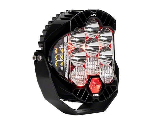 High-Performance Auxiliary Lighting. The Baja Designs LP9 Pro LED Auxiliary Light Pod is designed to deliver exceptional lighting performance for exhibition use. This spot beam model features a clear transparent lens and a matte black finish housing, providing a sleek and durable design. The light pod includes a red backlight for added functionality and style, making it a versatile and powerful addition to your vehicle's lighting setup.
