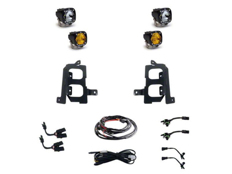 Performance and Style. Introducing the Baja Designs S1 Dual LED Fog Light Pocket Kit in Amber and Clear. This dual LED fog light kit is designed to take your vehicle's lighting game to the next level. It maximizes your factory fog pocket location by allowing you to mount two S1 lights on each side, giving you unparalleled visibility in any driving condition. The lower pair of S1 lights seamlessly integrates with your factory fog switch for easy control, while the upper pair is activated by your high beams, ensuring you have the illumination you need when it matters most.