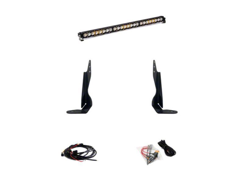 Powerful Off-Road Lighting Solution. The Baja Designs Single 30-Inch S8 Behind Grille Light Kit offers high-performance illumination for off-road enthusiasts. Its sleek, low-profile design allows for discreet mounting behind the grille, providing enhanced visibility without altering the vehicle's appearance.