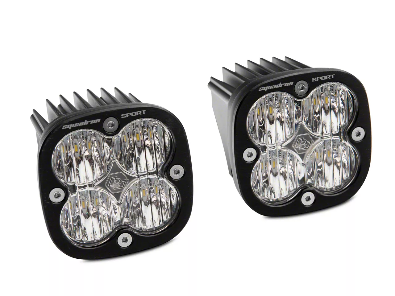 Squadron Sport White Fog Lights. A Baja Designs Squadron Sport LED Fog Light Pocket Kit will light up the trails or roads ahead with a strong, bright beam of white light.
