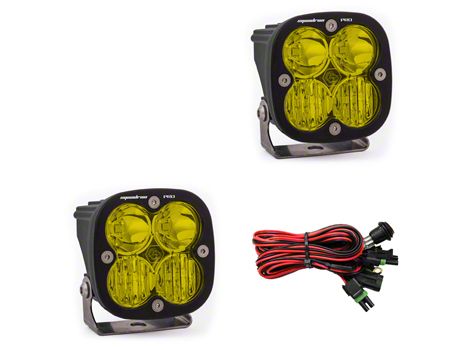 Blinded by the Light. The Baja Designs Squadron Pro Amber LED Light - Driving/Combo Beam - Pair outshines the competition in both appearance and performance with a blinding brightness that belies it's compact size. The wide driving pattern offers a 42° flattened horizontal beam that's ideal for cornering and dust and fog conditions, while the light's natural color reduces driver fatigue.