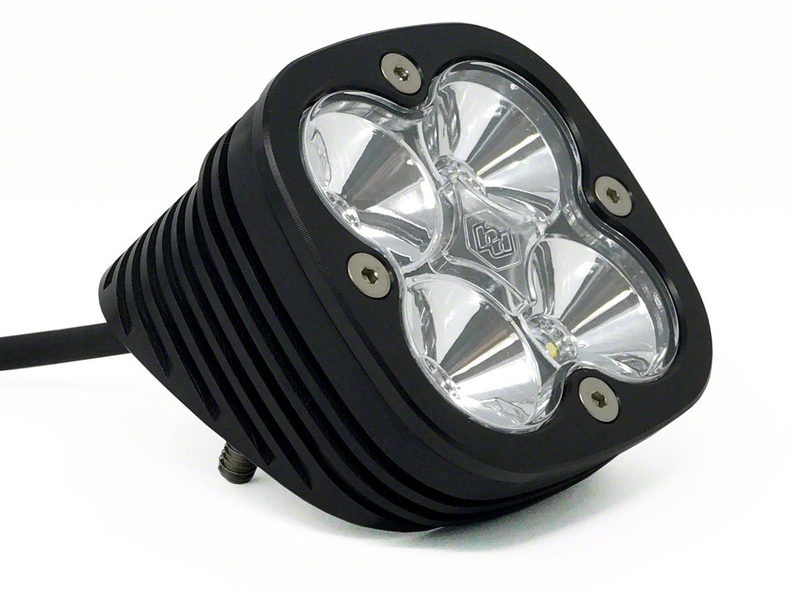 Designed for Scene Lighting. The Baja Designs Squadron Sport Pro Angled Flush Mount LED Light is designed to utilize flood beam optics to provide a bright beam to illuminate a 115-degree circle up to 60 feet away. This wide area lighting makes using your Ford F-150 as work or scene lights a breeze.