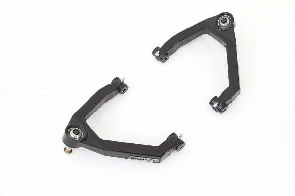Reinforced Front-End Geometry for Lifted Trucks. This BajaKits Chase Boxed Front Upper Control Arms resist flex under extreme loads, maintaining correct suspension alignment for improved steering precision and tire wear. Each arm is precision-welded with internal gussets and coated with a corrosion-resistant E-coat finish. Greaseable high-strength ball joints and polyurethane bushings extend service intervals and simplify maintenance, making these arms ideal for lifted or heavily loaded vehicles that demand reliable front-end performance on and off road.