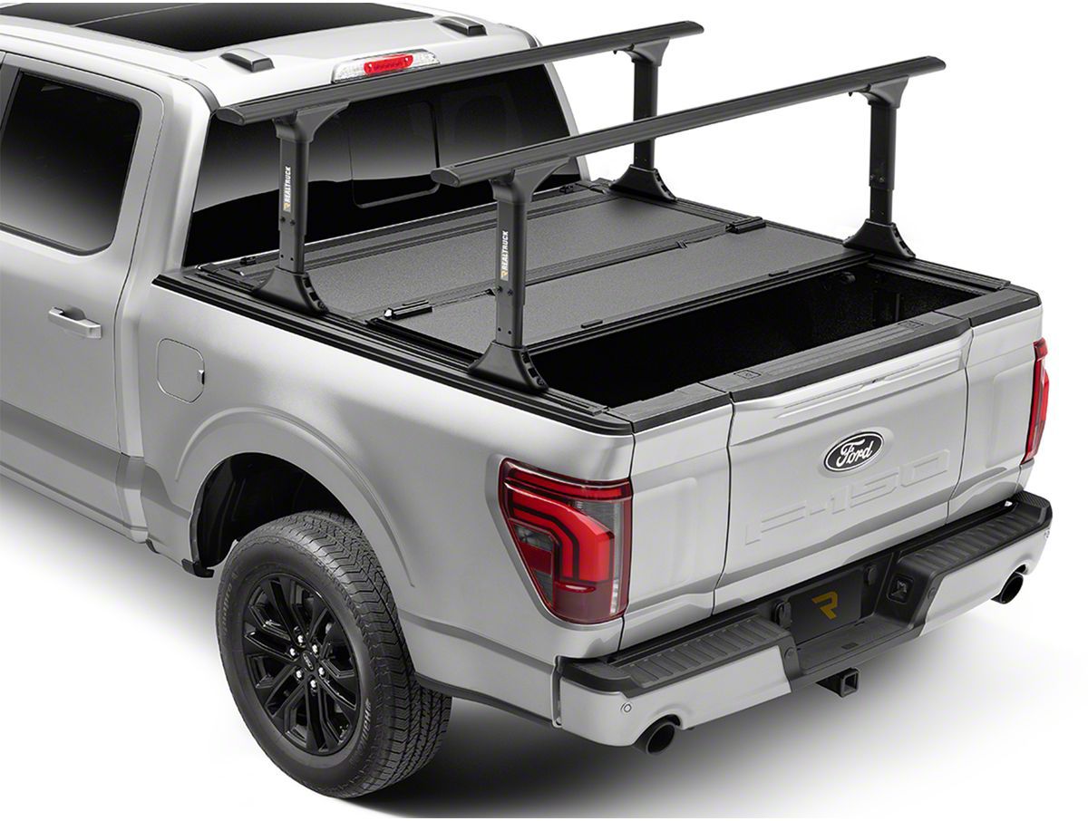 The best-selling truck bed cover in the world now with built-in rack compatibility.Introducing the all-new BAKFlip® MX4 TS, available exclusively from RealTruck. This premium tonneau builds on everything enthusiasts love about the BAKFlip MX4—now with built-in rack compatibility via intuitive, built-in T-slot side rails, allowing fast, secure mounting of racks, carriers, tents, and other cargo accessories (sold separately).As you’d expect from BAK® Industries, the BAKFlip MX4 TS delivers premium quality and performance. Its all-aluminum construction features redesigned top panels with high-density polymer cores, offering a 22 percent increase in strength over the original MX4.Despite its strength, the BAKFlip MX4 TS maintains an ultra-low profile, sitting nearly flush with your truck’s bed rails for a clean, streamlined appearance. The aluminum alloy is corrosion-resistant and protected by BAK’s proprietary Multi-Shield™ matte black finish, delivering 11x more surface durability and supporting up to 400 pounds of evenly distributed weight on top.When it comes to weather protection, the BAKFlip MX4 TS is built to perform. Upgraded rubber seals, tight-fit clamps, and a dual-action tailgate seal keep rain and debris out—allowing you to open or close the tailgate in any position. And if any moisture does sneak in, it’s funneled away through integrated water channels and drainage tubes (in most applications).The BAKFlip MX4 TS doesn’t just lock out the elements—it locks down your cargo, too. BAK’s redesigned auto-latching system secures your bed with each panel fold. Simultaneously, the T-slot rails provide versatile mounting for crossbars, baskets, rooftop tents, and more—maximizing cargo capacity above and below the bed cover.Operating the cover is simple—drop the tailgate, release the easy-to-use rear latches, and fold the cover forward. For complete bed access, fold it upright against the cab and secure it with heavy-duty prop rods—rubber bumpers prevent scuffs while in the open position. Installation is fast and hassle-free thanks to click-in clamps, reducing install time by 12 percent compared to the previous model.BAK® is a RealTruck® brand. Each BAKFlip MX4 TS is proudly engineered and assembled in Missouri using globally sourced materials and backed by a 5-year warranty.PRODUCT HIGHLIGHTSHigh-density polymer-reinforced aluminum top panels are 22 percent stronger than the original MX4Precision-engineered aluminum side rails and frameStriking textured black finish across all componentsMulti-Shield™ absorbs impacts, resists dents, scuffs, and scratches, and is fully UV-resistantIntegrated T-slot channels expand cargo versatility (rack and accessories sold separately)Folds against the cab for 100 percent bed accessRe-engineered prop rod clips for a secure holdPremium rubber bumpers protect the cab when folded into the upright positionRe-engineered automatic latching panels offer improved security over the BAKFlip MX4 (GEN 2) designComprehensive 3rd brake light visibility in all positionsSimple one-person installation12 percent quicker installation with all-new click-in designRe-engineered perimeter seals and tight-fit clamps for superior weather protectionIntegrated water drainage system400 lbs. weight capacity (evenly distributed)5-year warrantyAssembled in Missouri