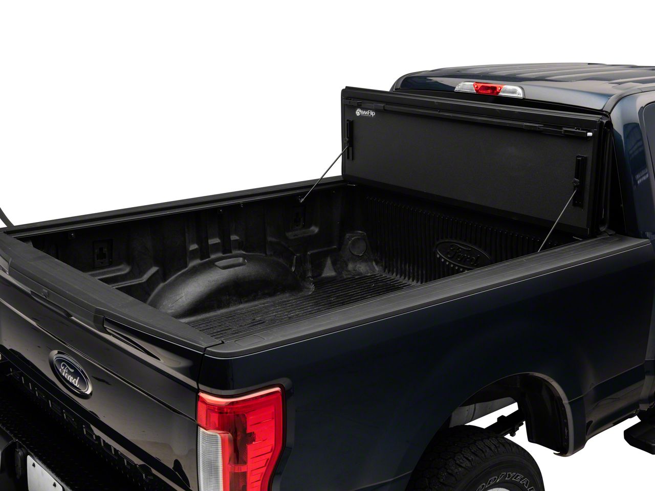 Reinforced Style and Security. Give your Super Duty a stylish and practical modification by installing the BAKFlip MX4 Folding Tonneau Cover from BAK Industries. This folding bed cover comes with an all-new integrated tailgate seal that allows you to close the tailgate with the cover up or down. It is also equipped with an all-weather, EPDM seal for superior protection from water intrusion.