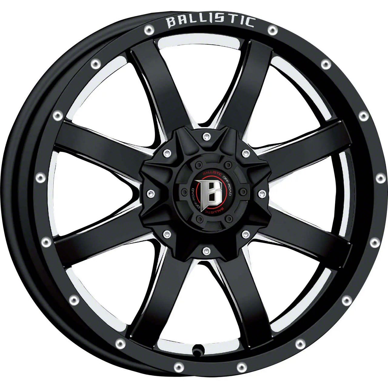 This 18x9 Ballistic Anvil Gloss Black Milled 5-Lug Wheel is completed in a high-quality gloss black finish with steel milled accents that will create a striking appearance. There's a durable clear coat that protects against driving hazards.