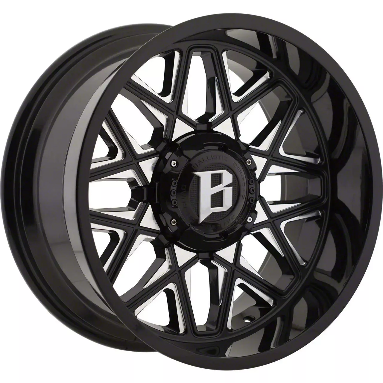 Application. This Ballistic Spider Gloss Black Milled 5-Lug Wheel; 20x12; -44mm Offset, with a backspace of 4.768 Inch, 121.2mm and bolt pattern of 5 x 139.7mm (5 x 5.5-Inch), is designed to enhance alignment and driving stability, ensuring a perfect fit with the vehicle model. Specifically designed to fit 2009-2018 RAM 1500 models, this wheel's specifications contribute to a seamless alignment and stable driving experience by ensuring the wheel fits perfectly within the vehicle's wheel well, reducing the risk of rubbing issues and optimizing handling characteristics. Sold individually.