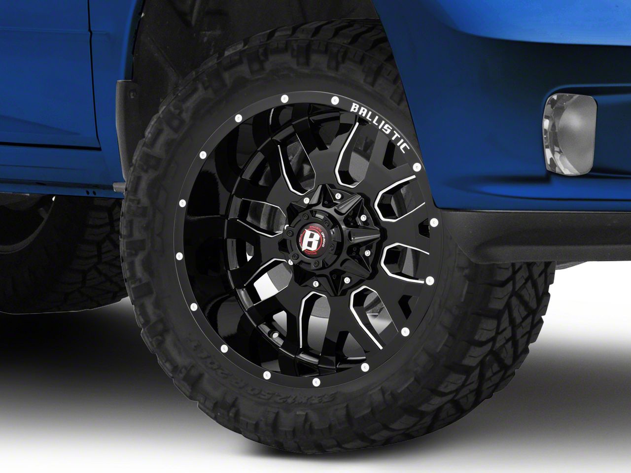 Application. This 20x10 Ballistic Tank Gloss Black Milled 5-Lug Wheel is designed for all 2002-2018 Dodge RAM 1500 trucks, excluding Mega Cabs. This wheel is sold individually. Please check with our ordering options to find out more about this wheel’s approved application.