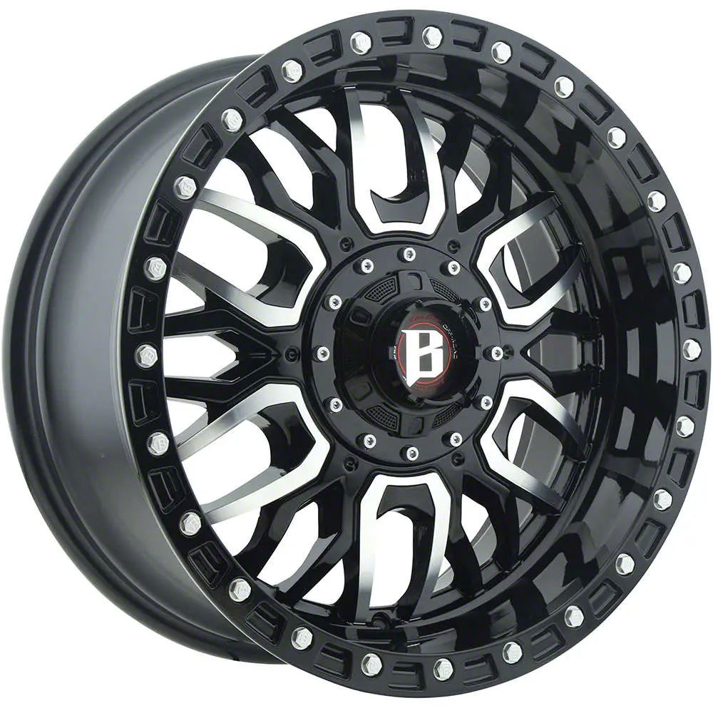 Ballistic Tomahawk Gloss Black Machined 6-Lug Wheel; 20x9; 0mm Offset. The Ballistic Tomahawk Gloss Black Machined 6-Lug Wheel offers a striking balance of style and refinement. Its unique design accentuates the vehicle's aesthetic, while the premium construction underscores its robust nature. This wheel is a perfect choice for those seeking both elegance and a strong visual statement.